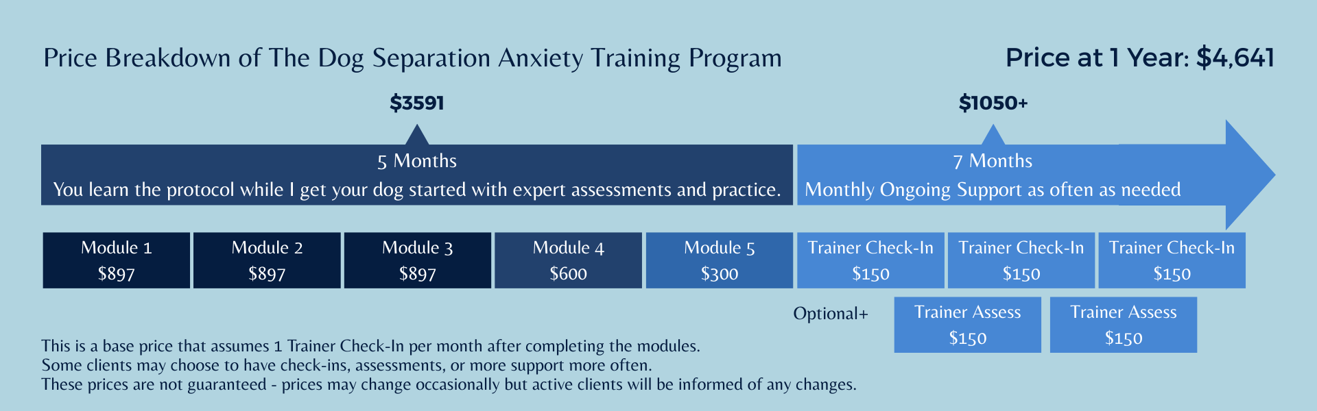 This $500.00 course is my effort to provide the necessary skills and education for pet parents to complete self-directed separation anxiety training.